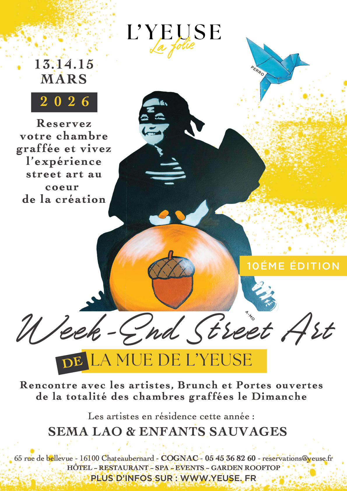 Résidence artistique le week-end du 13.14.15 Mars avec Sema Lao et Enfants Sauvages Réservez votre chambre dès maintenant Dimanche 15 Mars: Brunch Graffiti et à 15h00 Portes Ouvertes pour découvrir toutes les œuvres de l'hôtel