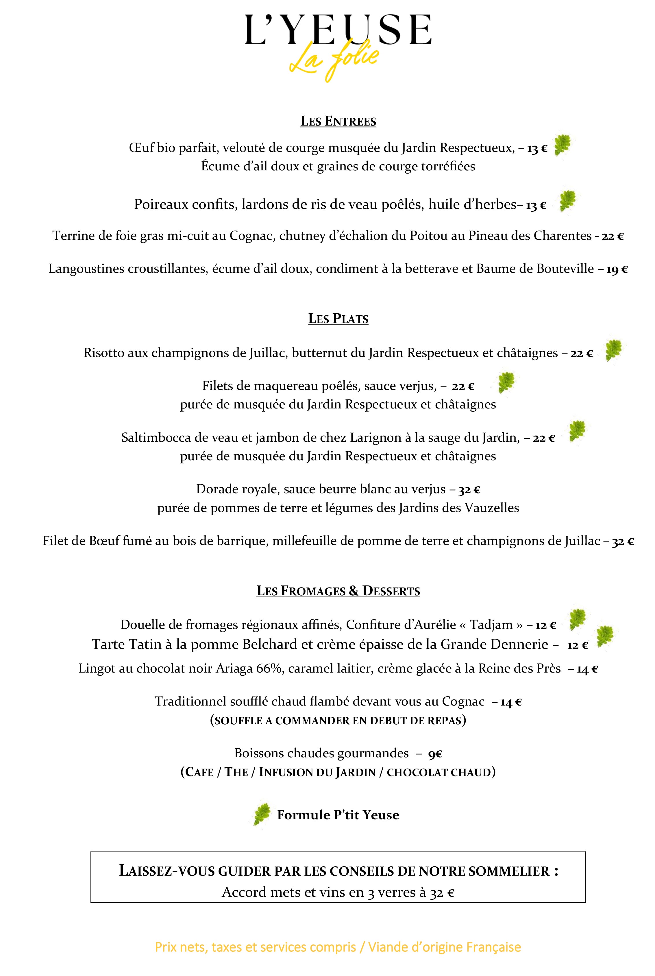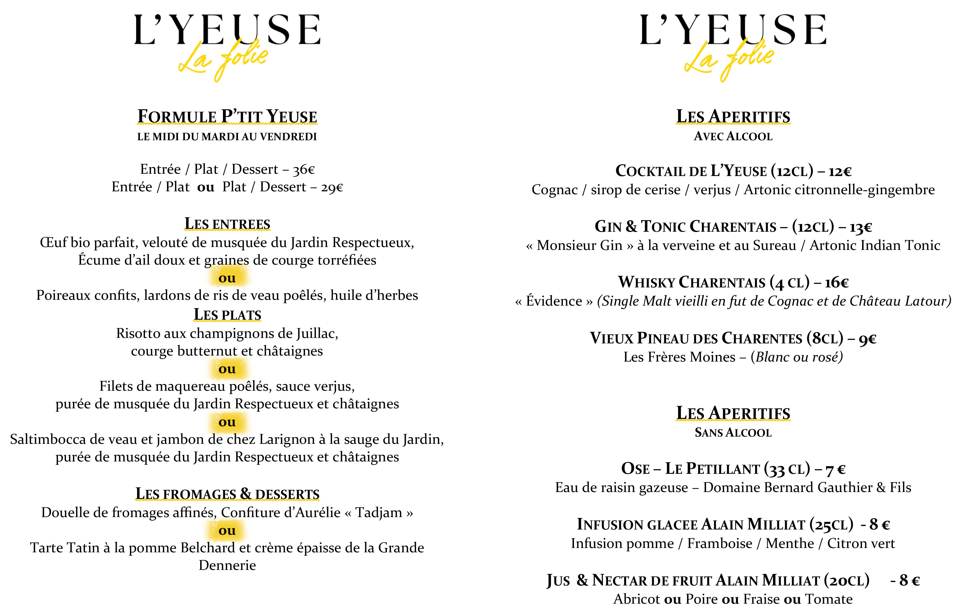 Le Menu P'tit Yeuse :